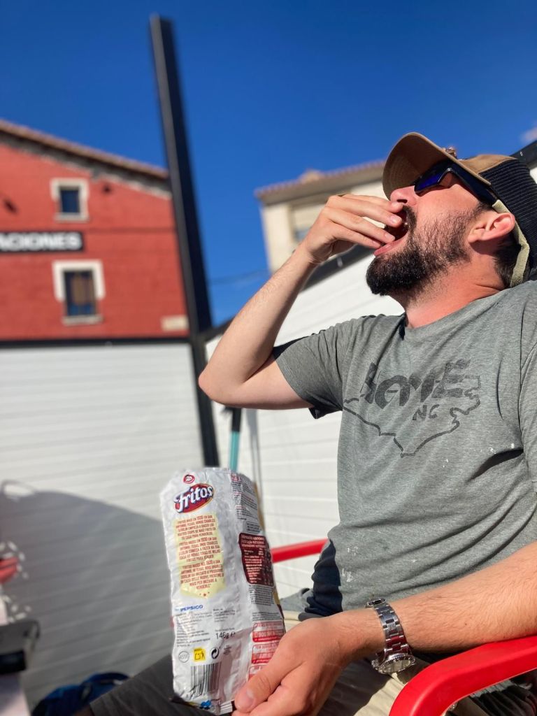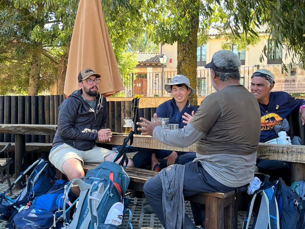 An early start lead to a beautiful sunrise, and hiked the morning portion with the Camino youngsters. Quite a crew! After lunch I hiked with James, where we talked tech and nerded out; he used to work on IBM Main frames for NASA when they were first created. Stopped for watermellon at a truck/vanstop ran by Angel, a very funny Spaniard. Spoke with a old highschool friend the night before, and it was good to catch up with him. Caught a taxi to Burgos after San Juan; the Camino youngsters booked a Airbnb for two nights. We went out onto the town, and ate some good food!