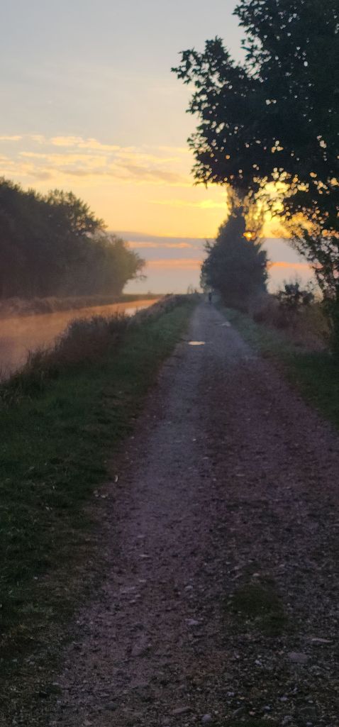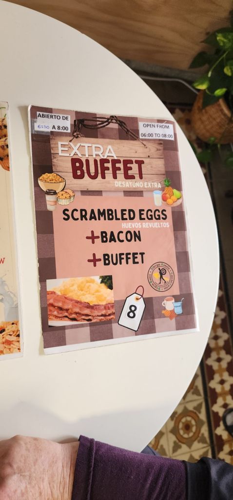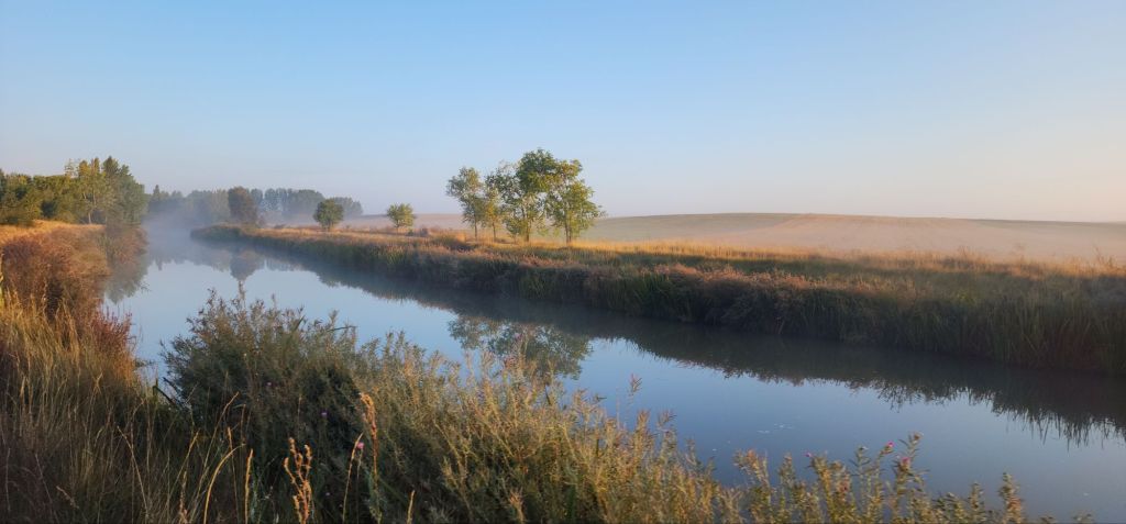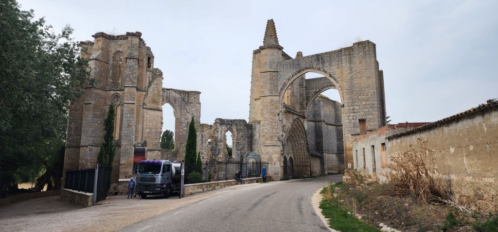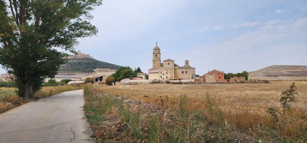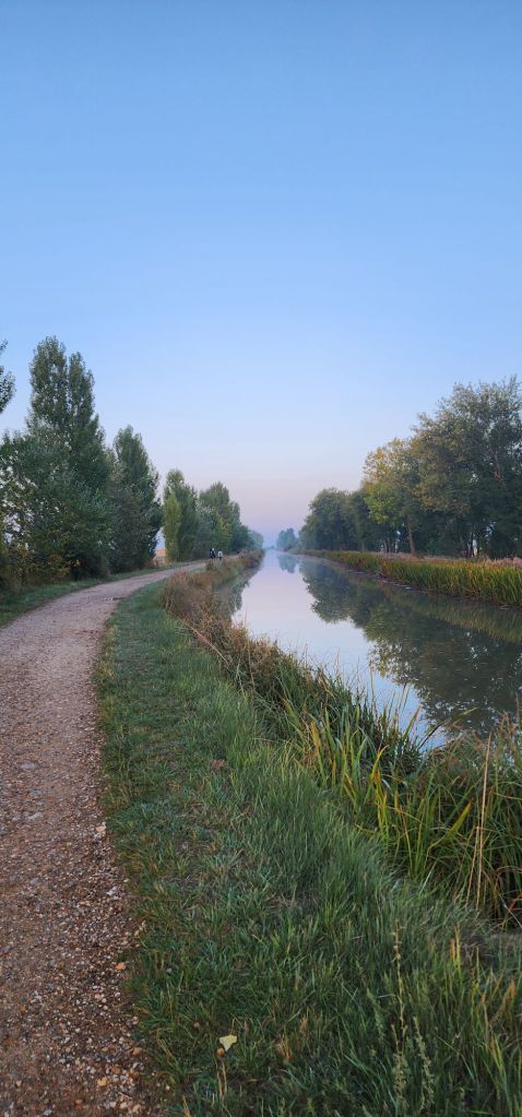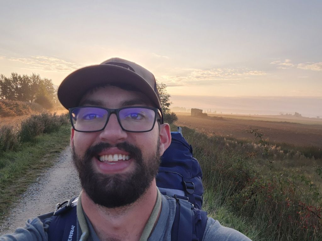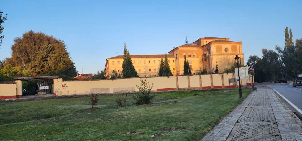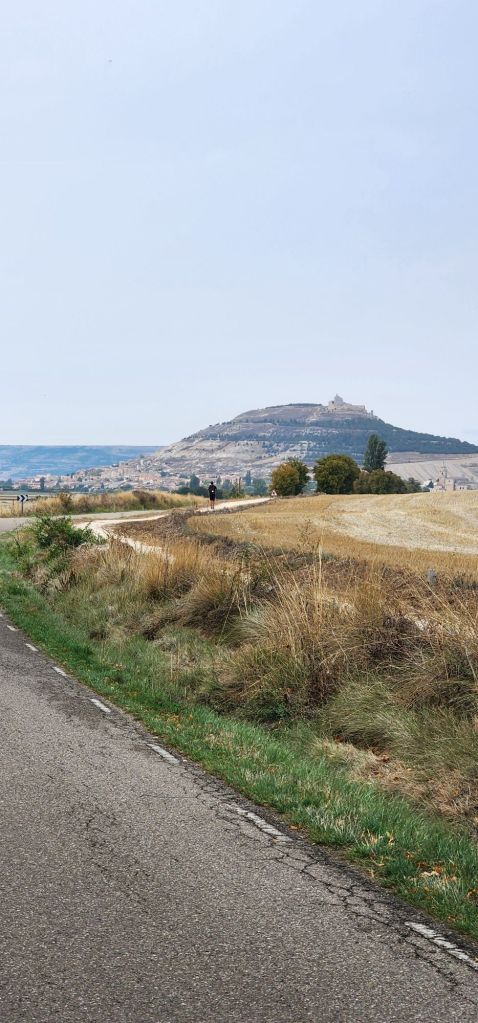 The second day of hiking in the meseta, the scenery was a little bland, but still very beautiful. I met and walked with Joe and Bunny from Florida, a brother sister duo. Joe was retired IT and IT leadership, and Bunny was a medical technician. Joe and I nerded out for a bit, and he passed down some good advice. Stopped for breakfast at an albergue off the path, but ended up running into so many folks I’ve met it was worth it. Breakfast was also very good, omelette with chorizo. A cat was playing with all of the pilgrams and also jumping around the field — very funny to watch. Night before was a symphony of different synchronized snoring, honestly impressive, but terrible to sleep to. The afternoon had too many gnats to deal with — the buff came in pretty handy to block them all out.